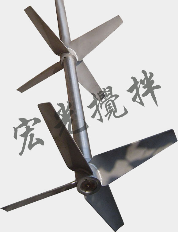 有平槳式和斜槳式兩種。平槳式攪拌器由兩片平直槳葉構成。槳葉直徑與高度之比為 4~10,圓周速度為1.5~3m/s,所產生的徑向液流速度小。斜槳式攪拌器的兩葉相反折轉45°或60°,因而產生軸向液流。槳式攪拌器結構簡單,常用于低粘度液體的混合以及固體微粒的溶解和懸浮。