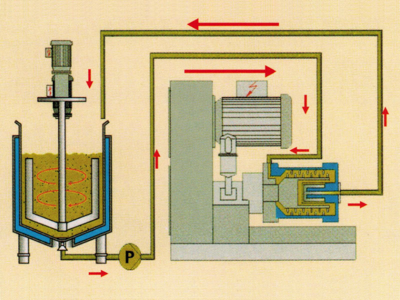 可實現低溫砂磨 縮短漿料在磨腔內的滯留時間,有效抑制溫度上升。通過循環冷卻水的冷卻,可實現低溫砂磨。 |
